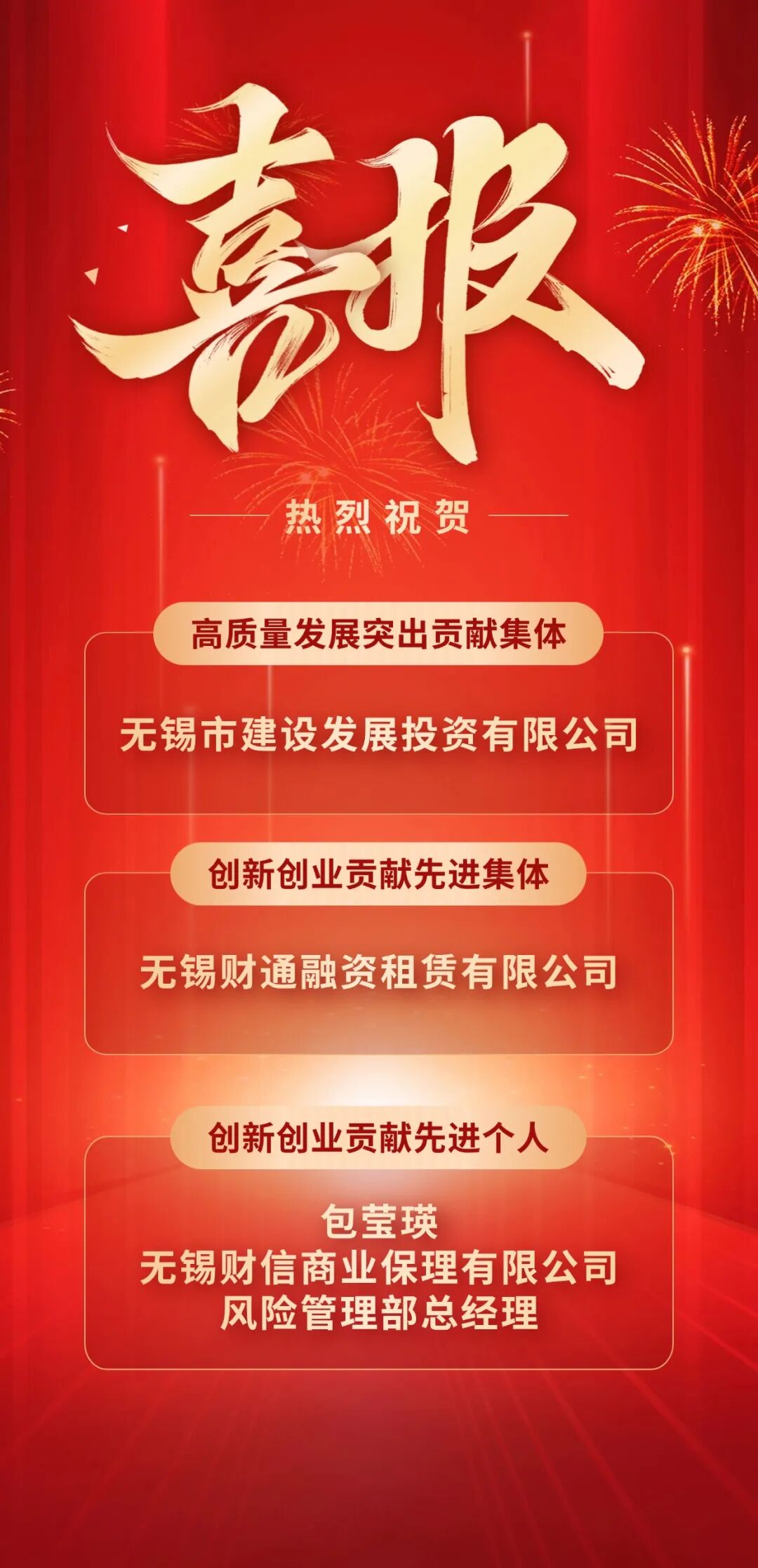 3月30日,市委、市政府印发《关于表彰2025年度无锡市高质量发展突出贡献奖、无锡市创新创业贡献奖先进集体和个人的决定》,无锡城建发展集团建发公司荣获“高质量发展突出贡献集体”称号,所属财通租赁荣获“创新创业贡献先进集体”称号,所属财信保理风险管理部总经理包莹瑛荣获“创新创业贡献先进个人”称号。